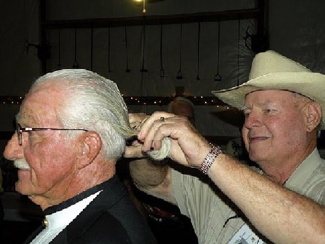 Cullen Hunt removes Ken Fraser's charitable ponytail.